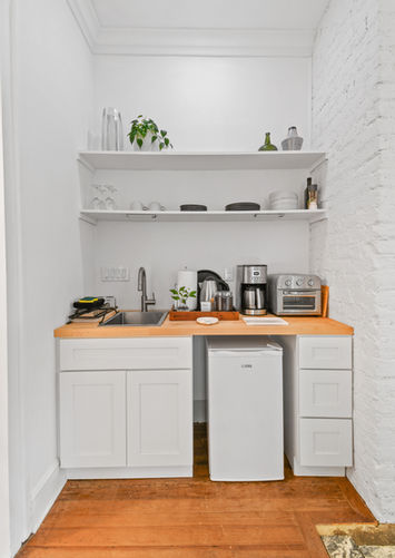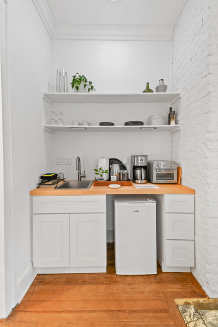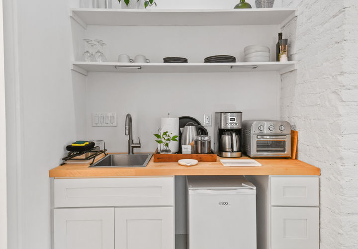 kitchenette with sink, mini fridge, coffee maker, air fryer, microwave